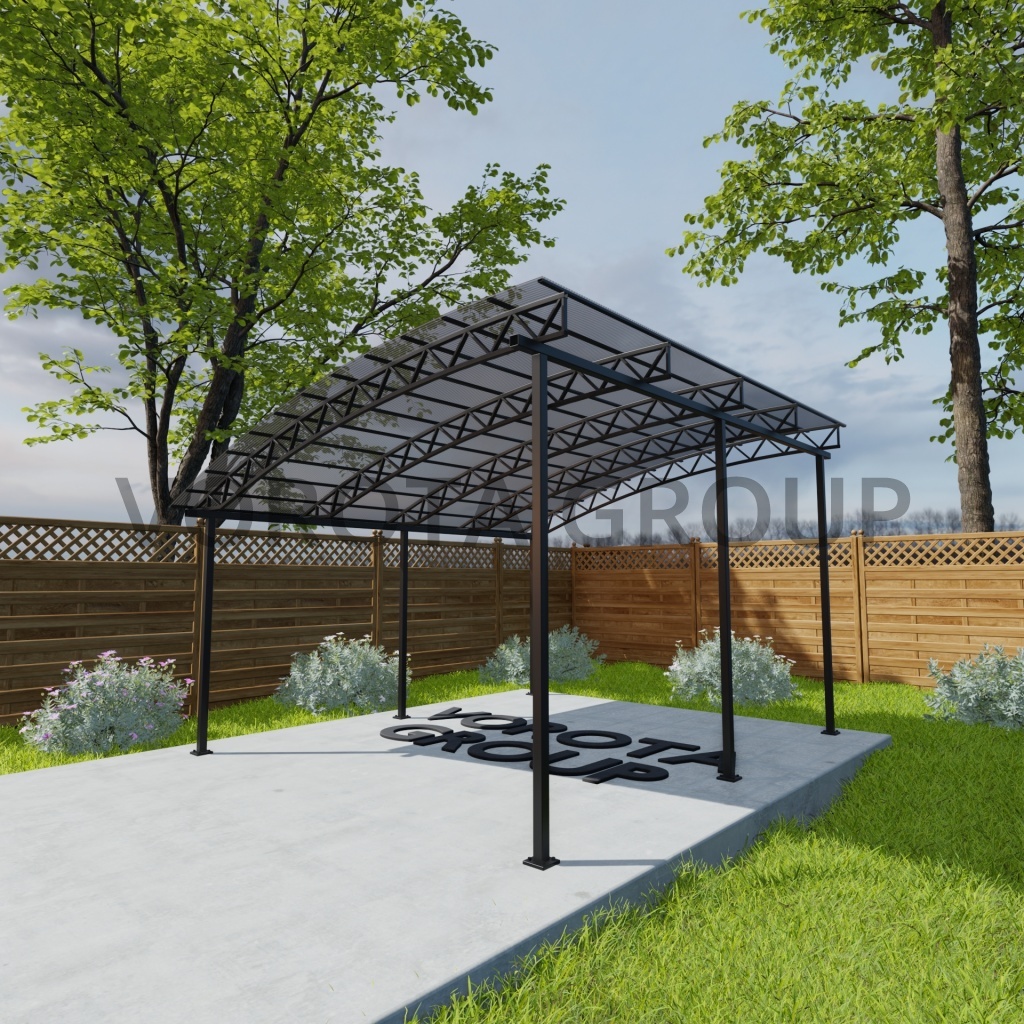 Навес из швелера бронзово-серого цвета, сотовый поликарбонат 5500*6000
