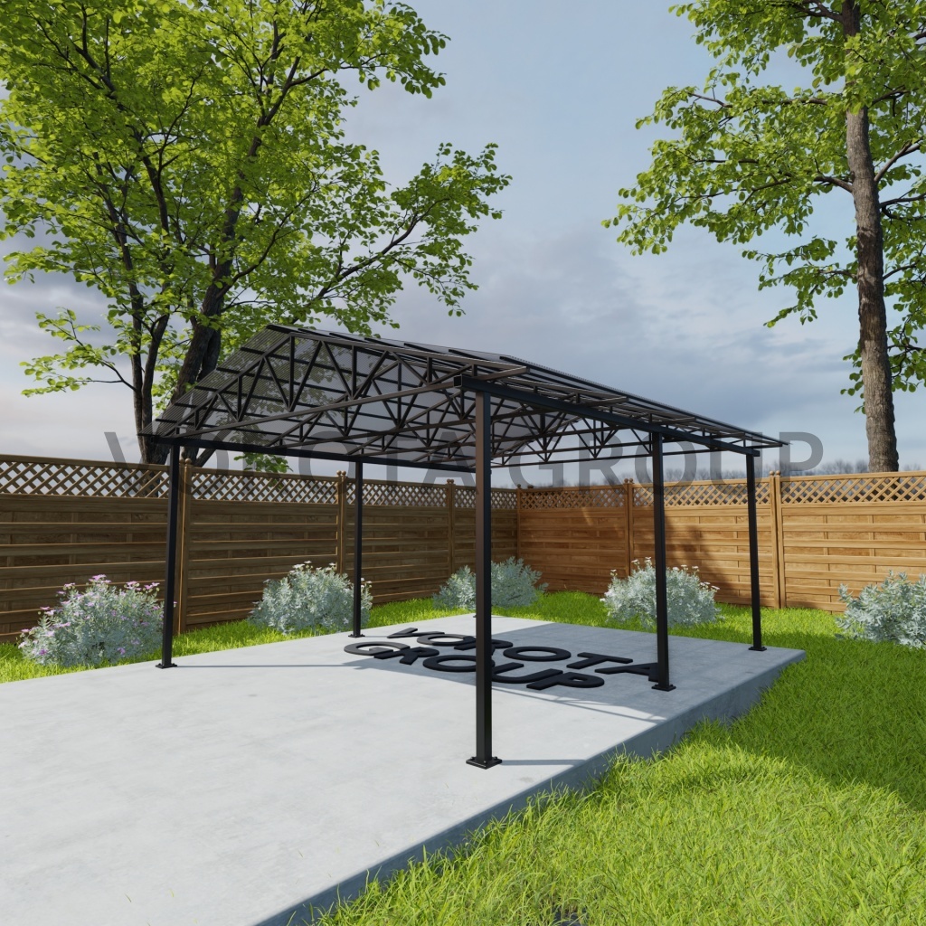 Двухскатный навес с арочным основанием бронзово-серого цвета, сотовый поликарбонат 5500*12000