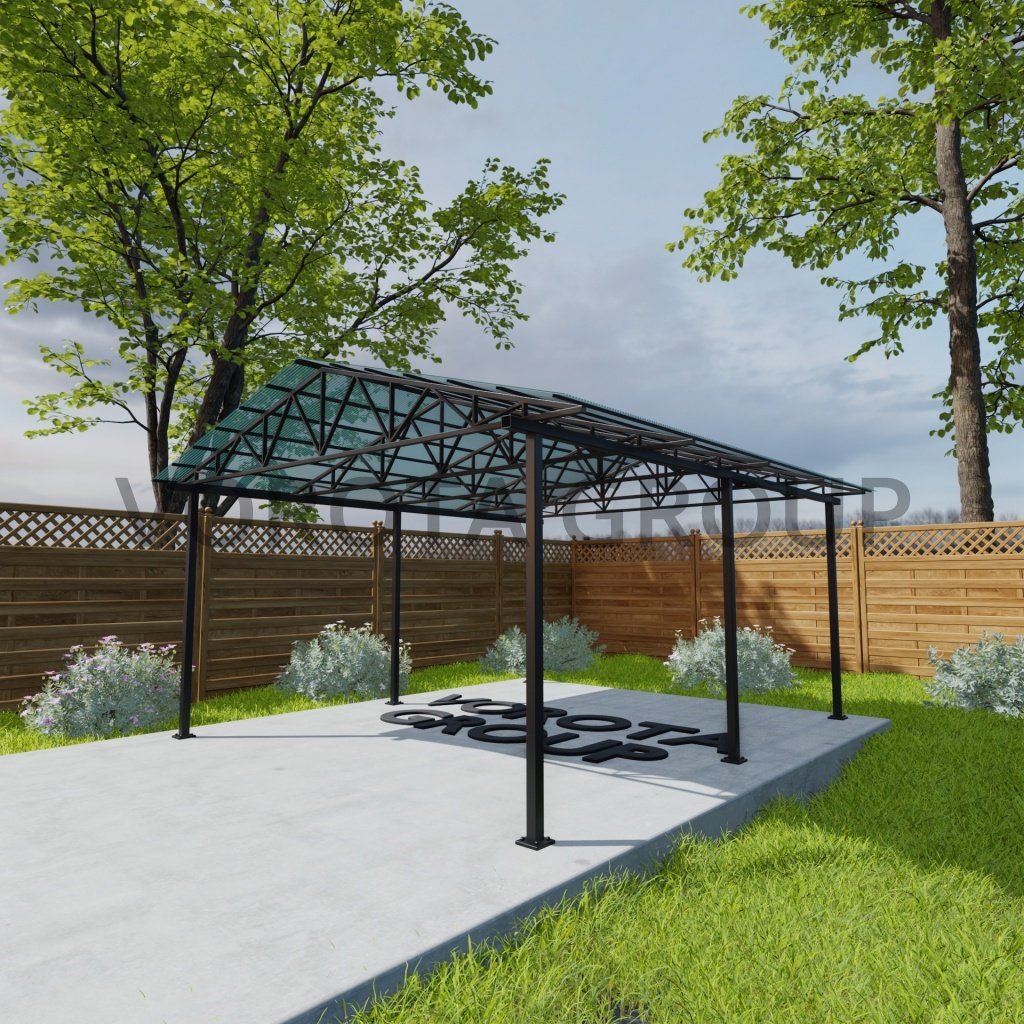 Двухскатный навес изумрудного цвета, монолитный поликарбонат 6500*7000