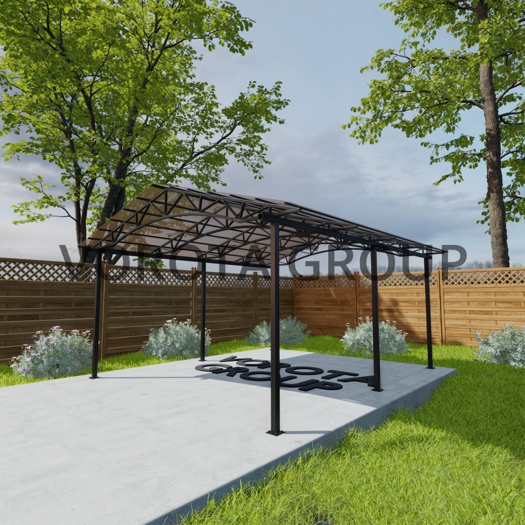 Двухскатный навес с арочным основанием бронзово-серого цвета, сотовый поликарбонат 5500*7000