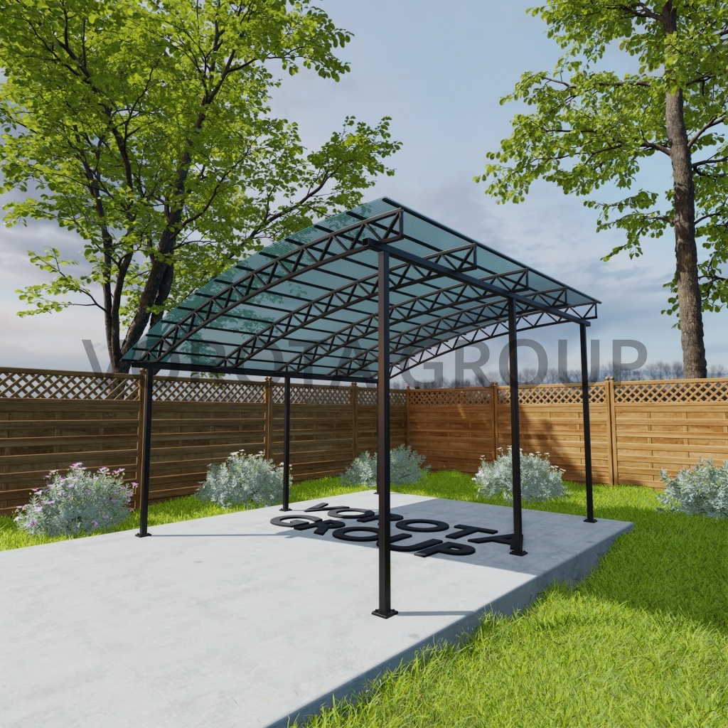 Двухскатный навес бронзово-серого цвета, монолитный поликарбонат 5500*12000