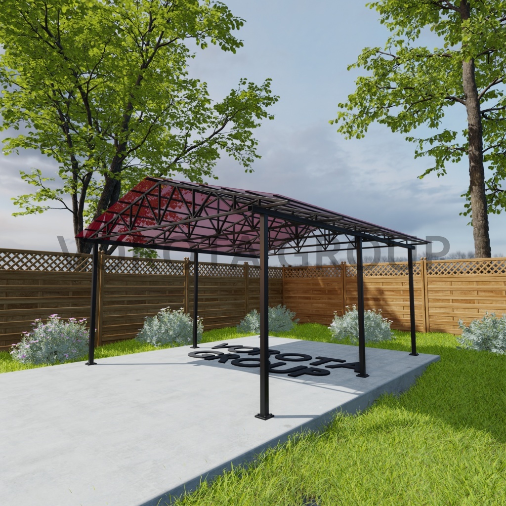 Двухскатный навес с арочным основанием гранатового цвета, монолитный поликарбонат 5500*8000