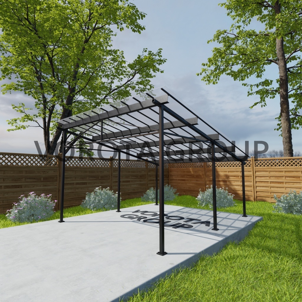 Навес из швелера коричневого цвета, монолитный поликарбонат 6500*12000